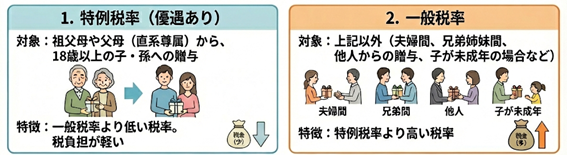 財産を贈る側、受け取る側の関係性で変わる「特例税率」と「一般税率」